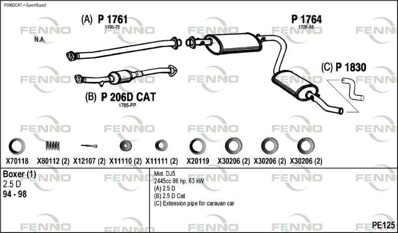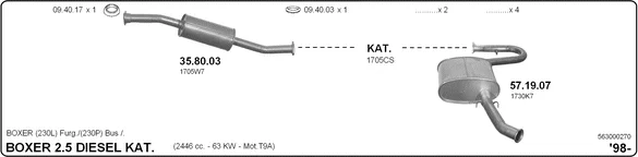 PEUGEOT BOXER autobus (230P) 2.5 D - Výfukový systém - kompletní od 8/1994 do 4/2002, 2446 ccm, 63 kW, 86 hp, T9A (DJ5), autobus