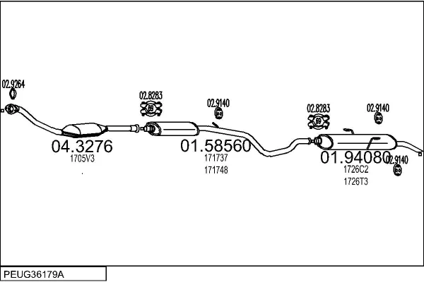 PEUGEOT 306 (7B, N3, N5) 1.9 SLD - Výfukový systém - kompletní od 6/1994 do 5/2001, 1905 ccm, 47 kW, 64 hp, DJZ (XUD9A), limuzína