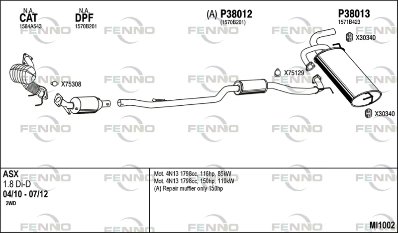 MITSUBISHI ASX (GA_W_) 1.8 DI-D (GA6W) - Výfukový systém - kompletní