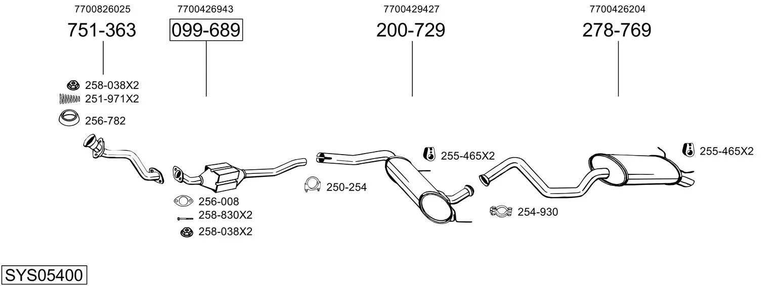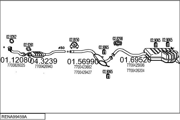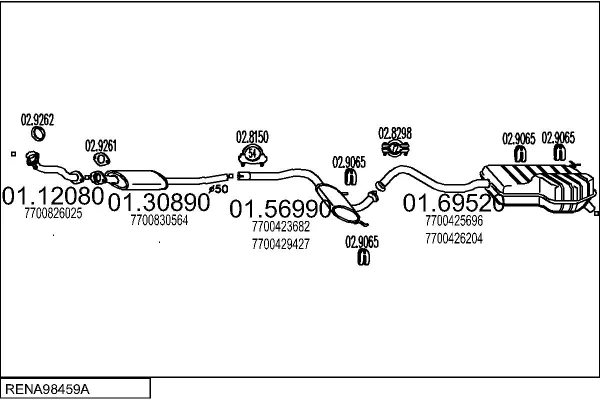 RENAULT LAGUNA I (B56_, 556_) 2.2 D (B56F/2) - Výfukový systém - kompletní od 11/1993 do 3/2001, 2188 ccm, 61 kW, 83 hp, G8T 706, G8T 752, G8T 790, G8T 794, Šikmá zadní část