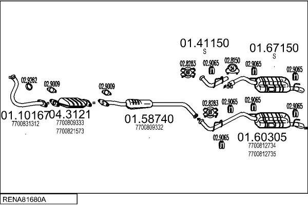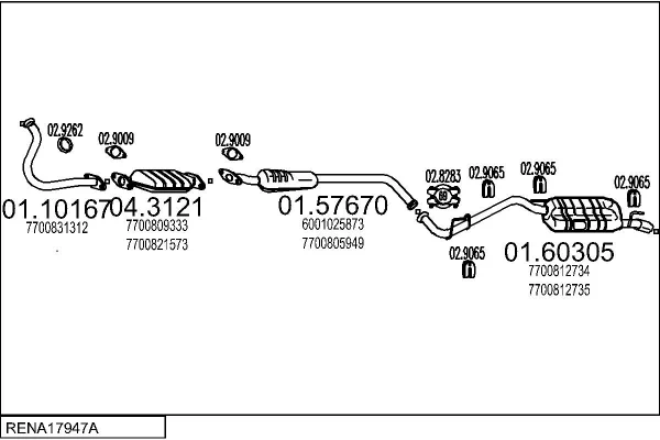 RENAULT CLIO I (B/C57_, 5/357_) 1.8 (B/C57C, C579, B/C57U) - Výfukový systém - kompletní od 8/1994 do 4/1996, 1794 ccm, 66 kW, 90 hp, F3P 710, F3P 712, F3P 714, Šikmá zadní část