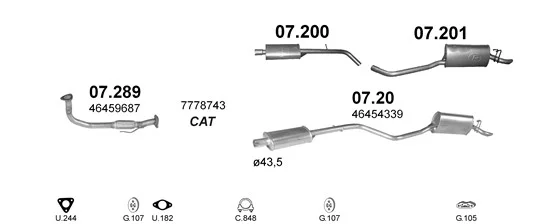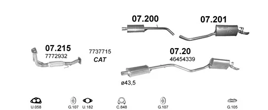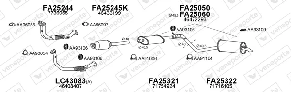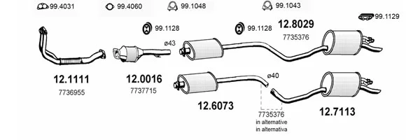 FIAT PUNTO (176_) 55 1.1 - Výfukový systém - kompletní od 9/1993 do 9/1999, 1108 ccm, 40 kW, 54 hp, 176 A6.000, 176 B2.000, Šikmá zadní část