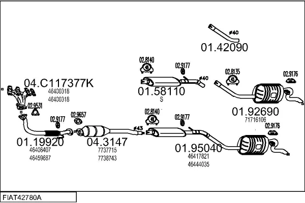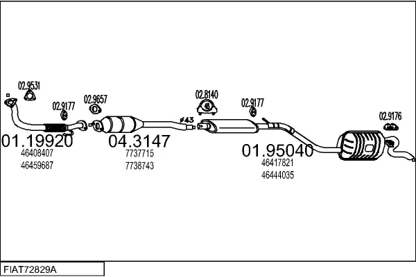 FIAT PUNTO (176_) 60 1.2 (176AP, 176AR, 176AQ, 176BB) - Výfukový systém - kompletní od 9/1993 do 9/1999, 1242 ccm, 44 kW, 60 hp, 176 B1.000, 176 B4.000, Šikmá zadní část