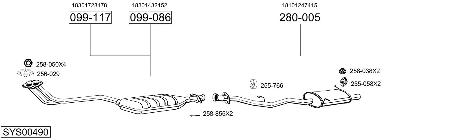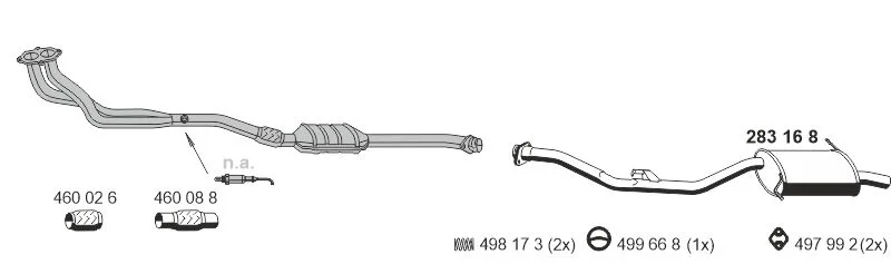 BMW 3 Compact (E36) 316 i - Výfukový systém - kompletní od 1/1994 do 8/2000, 1596 ccm, 75 kW, 102 hp, M43 B16 (164E2), Šikmá zadní část