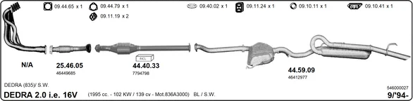 LANCIA DEDRA SW (835_) 2.0 16V (835ED) - Výfukový systém - kompletní od 7/1994 do 7/1999, 1995 ccm, 102 kW, 139 hp, 836 A3.000, kombi