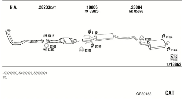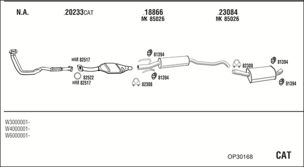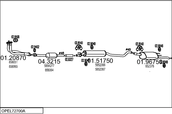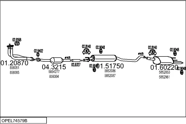OPEL CORSA B (S93) 1.6 i 16V (F08, F68, M68) - Výfukový systém - kompletní od 9/1994 do 9/2000, 1598 ccm, 78 kW, 106 hp, X 16 XE, Šikmá zadní část