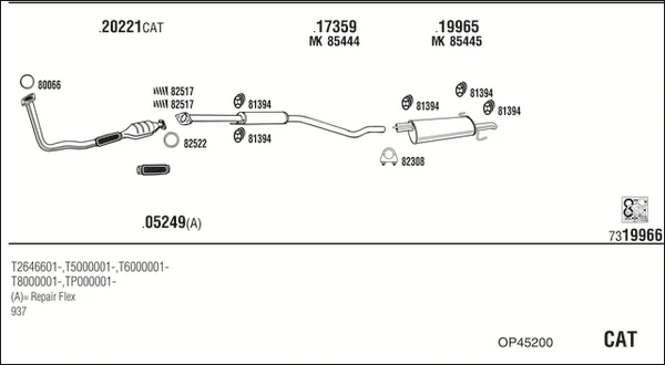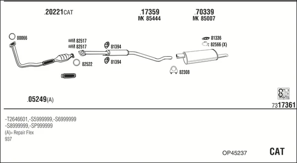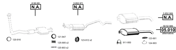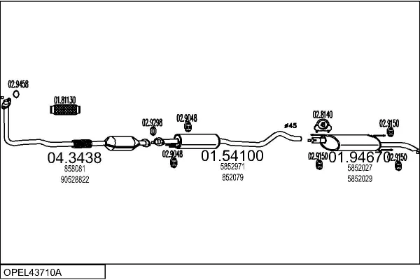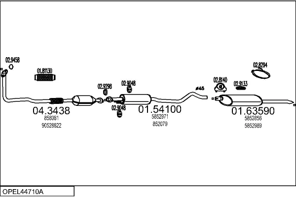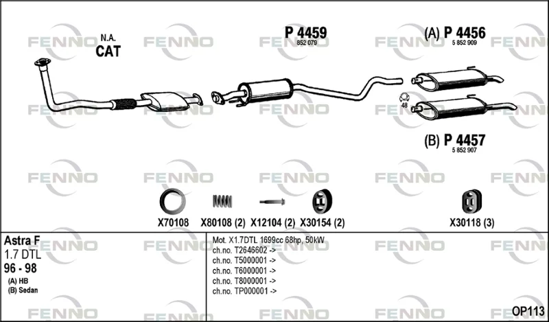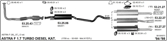OPEL ASTRA F limuzína (T92) 1.7 TD (F19, M19) - Výfukový systém - kompletní od 11/1994 do 9/1998, 1699 ccm, 50 kW, 68 hp, X 17 DTL, limuzína