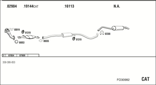 FORD ESCORT V limuzína (AFL) 1.4 - Výfukový systém - kompletní od 8/1993 do 1/1995, 1392 ccm, 55 kW, 75 hp, F4B, FUH, limuzína