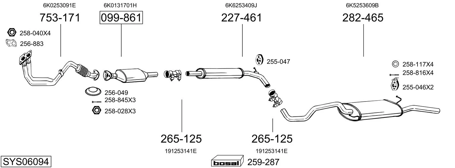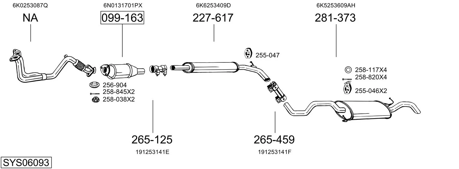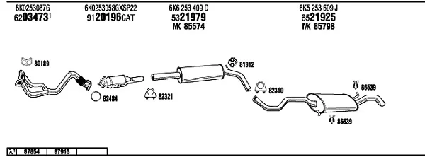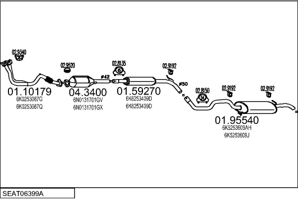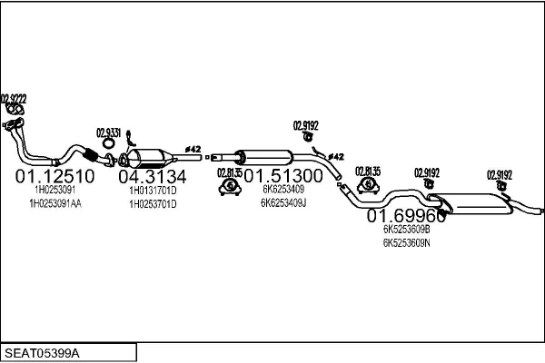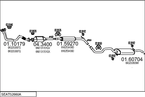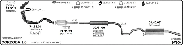SEAT CORDOBA (6K1, 6K2) 1.6 i - Výfukový systém - kompletní od 2/1993 do 10/2002, 1598 ccm, 55 kW, 75 hp, ABU, AEE, ALM, limuzína