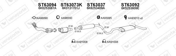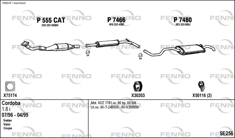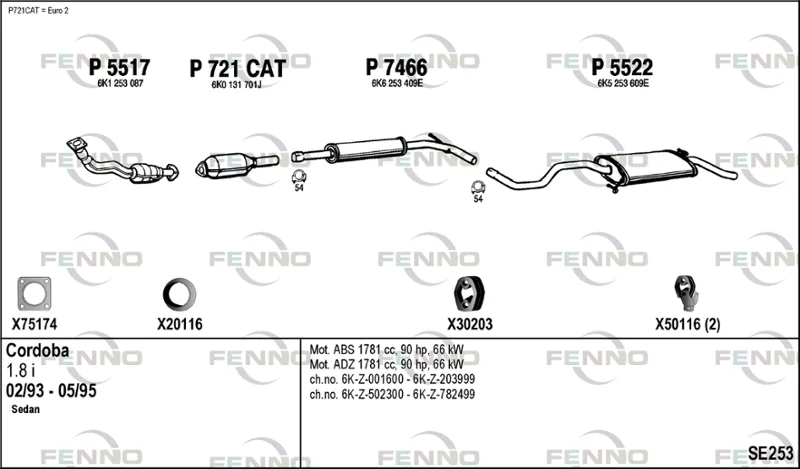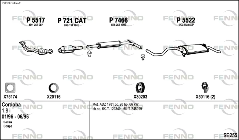 SEAT CORDOBA (6K1, 6K2) 1.8 i - Výfukový systém - kompletní od 2/1993 do 9/2002, 1781 ccm, 66 kW, 90 hp, ABS, ACC, ADZ, limuzína