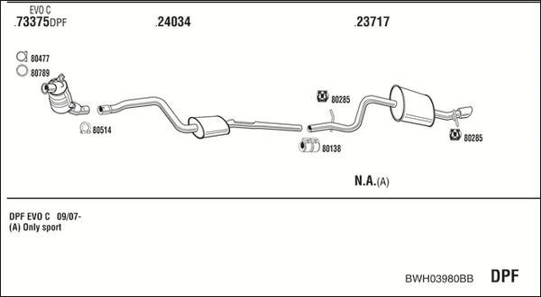 BMW 3 Touring (E91) 318 d - Výfukový systém - kompletní od 7/2007 do 6/2012, 1995 ccm, 100 kW, 136 hp, N47 D20 A, N47 D20 C, kombi