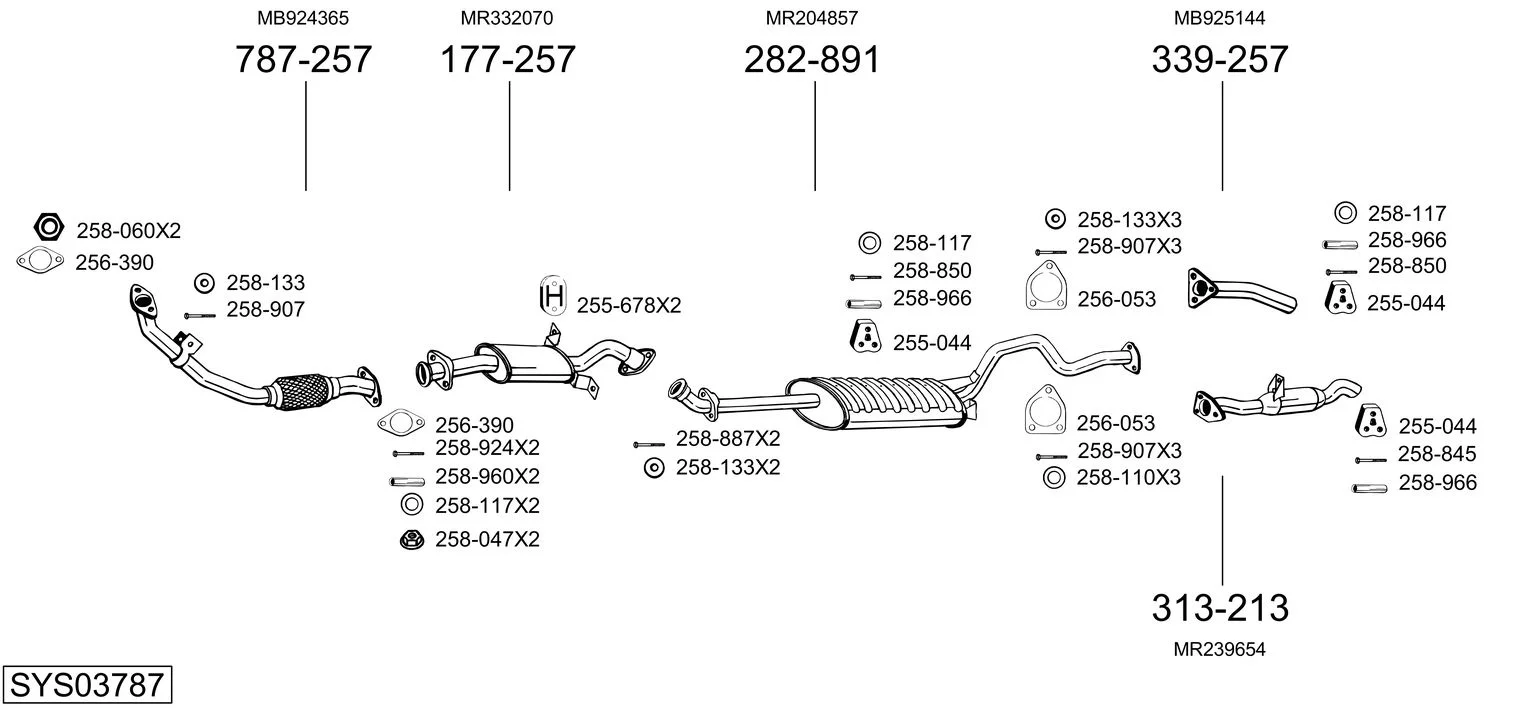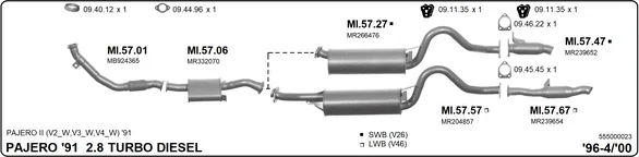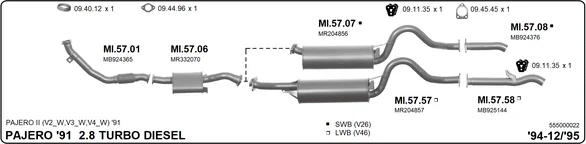 MITSUBISHI PAJERO II (V3_W, V2_W, V4_W, V5_W) 2.8 TD (V46W, V26W) - Výfukový systém - kompletní od 6/1994 do 10/1999, 2835 ccm, 92 kW, 125 hp, 4M40-T, uzavřený terénní vůz