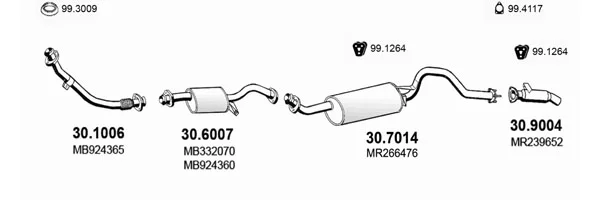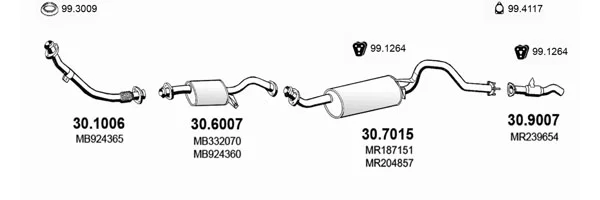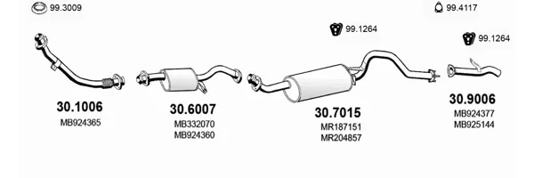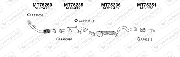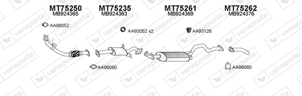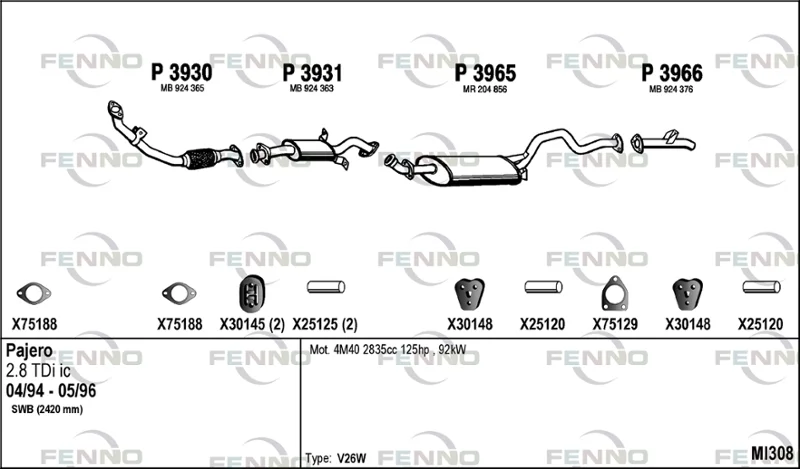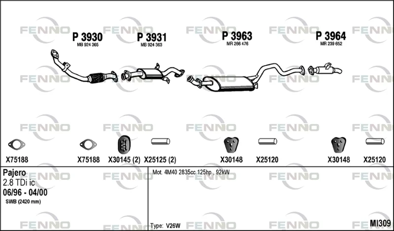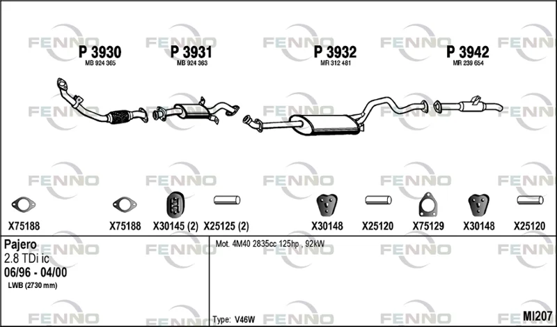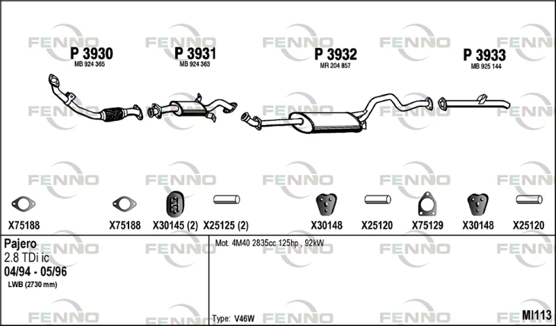 MITSUBISHI PAJERO II (V3_W, V2_W, V4_W, V5_W) 2.8 TD (V46W, V26W) - Výfukový systém - kompletní od 6/1994 do 10/1999, 2835 ccm, 92 kW, 125 hp, 4M40-T, uzavřený terénní vůz