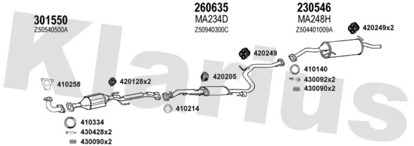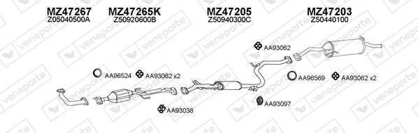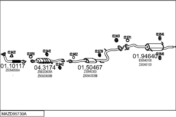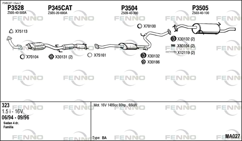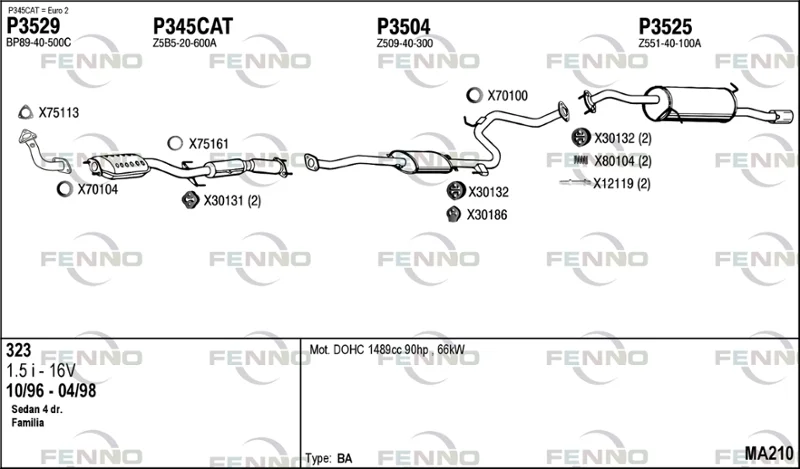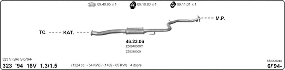 MAZDA 323 S V (BA) 1.5 16V (BA11) - Výfukový systém - kompletní od 8/1994 do 9/1998, 1489 ccm, 65 kW, 88 hp, Z5-DE, limuzína