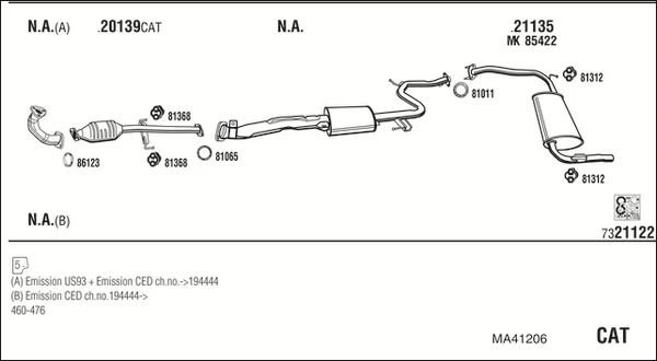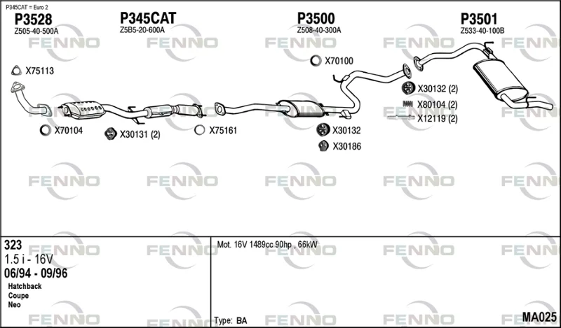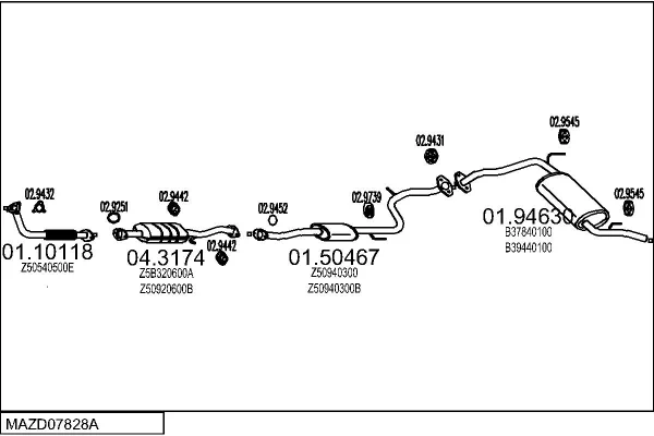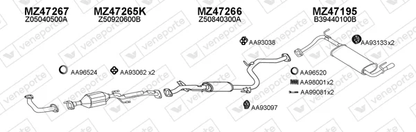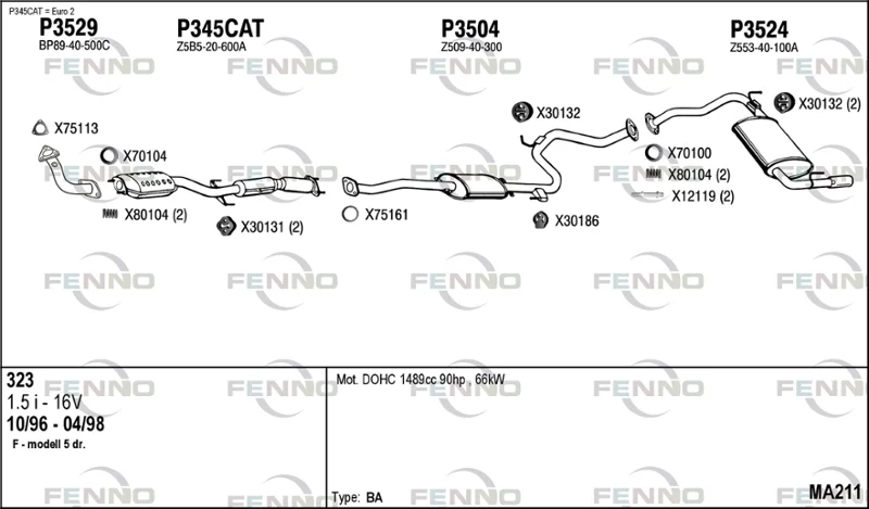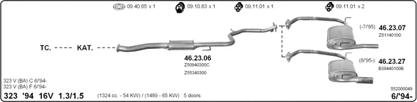 MAZDA 323 F V (BA) 1.5 16V (BA11) - Výfukový systém - kompletní od 7/1994 do 9/1998, 1489 ccm, 65 kW, 88 hp, Z5-DE, Šikmá zadní část