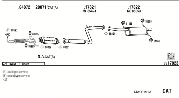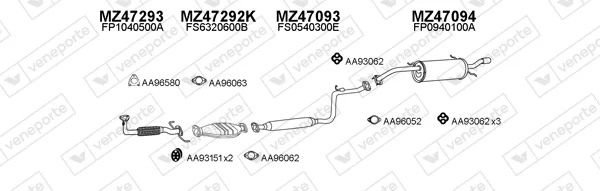 MAZDA 626 IV (GE) 1.8 i (GE8P) - Výfukový systém - kompletní od 8/1994 do 4/1997, 1840 ccm, 66 kW, 90 hp, FP01LP, limuzína