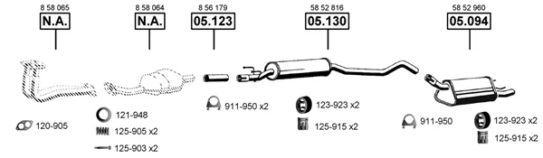 OPEL TIGRA (S93) 1.4 16V (F07) - Výfukový systém - kompletní od 7/1994 do 12/2000, 1389 ccm, 66 kW, 90 hp, X 14 XE, kupé