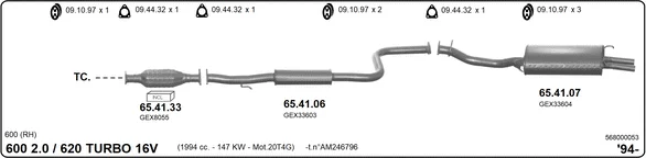 ROVER 600 I (RH) 620 Ti Vitesse - Výfukový systém - kompletní od 5/1994 do 8/1998, 1994 ccm, 147 kW, 200 hp, 20 T4G, limuzína