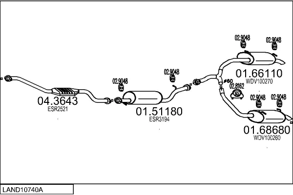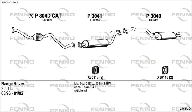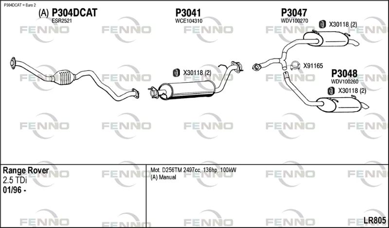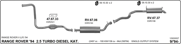LAND ROVER RANGE ROVER II (P38A) 2.5 D 4x4 - Výfukový systém - kompletní od 7/1994 do 3/2002, 2497 ccm, 100 kW, 136 hp, 25 6T (BMW), uzavřený terénní vůz