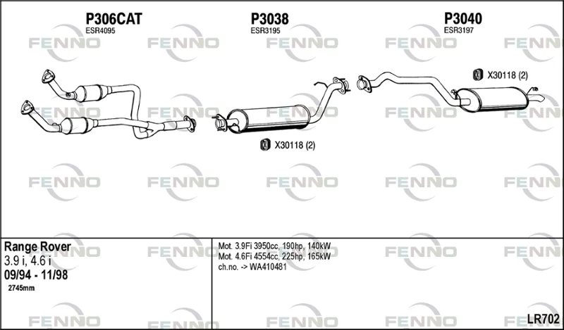 LAND ROVER RANGE ROVER II (P38A) 3.9 4x4 - Výfukový systém - kompletní od 7/1994 do 3/2002, 3947 ccm, 140 kW, 190 hp, 42 D, uzavřený terénní vůz
