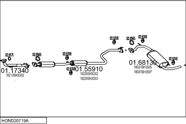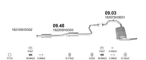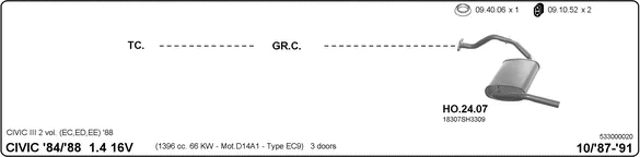 HONDA CIVIC IV Hatchback (EC, ED, EE, EF) 1.4 L (EC9) - Výfukový systém - kompletní od 10/1987 do 12/1991, 1396 ccm, 66 kW, 90 hp, D14A1, Šikmá zadní část
