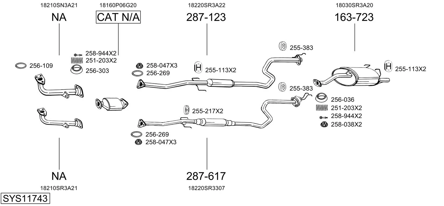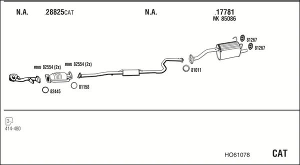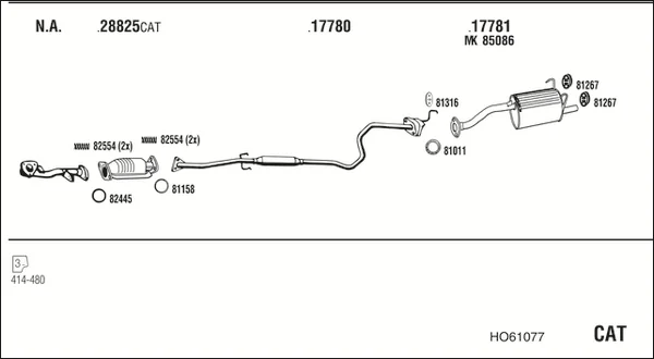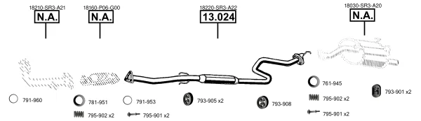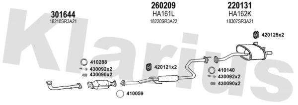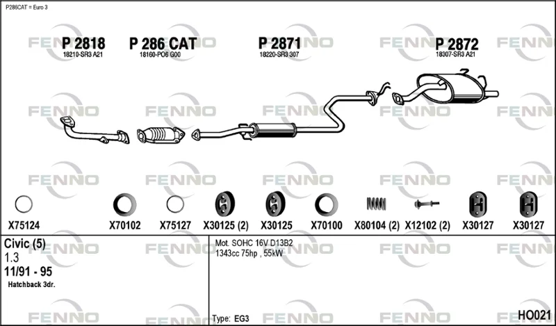 HONDA CIVIC V Hatchback (EG) 1.3 16V (EG3) - Výfukový systém - kompletní od 10/1991 do 11/1995, 1343 ccm, 55 kW, 75 hp, D13B2, Šikmá zadní část