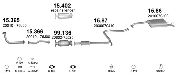 NISSAN PRIMERA Hatchback (P10) 1.6 - Výfukový systém - kompletní