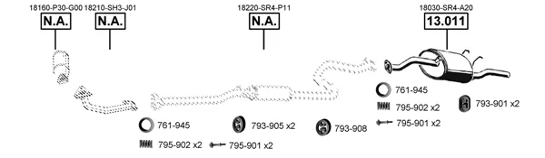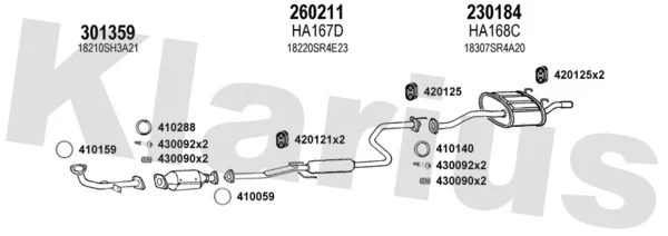 HONDA CIVIC V limuzína (EG, EH) 1.5 i 16V (EG8) - Výfukový systém - kompletní od 10/1991 do 11/1995, 1493 ccm, 69 kW, 94 hp, D15B2, D15Z1, limuzína