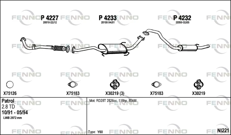 NISSAN PATROL III/2 Station Wagon (W260) 2.8 TD - Výfukový systém - kompletní od 6/1989 do 11/1995, 2826 ccm, 85 kW, 116 hp, RD28T, uzavřený terénní vůz