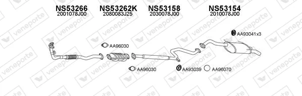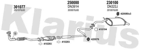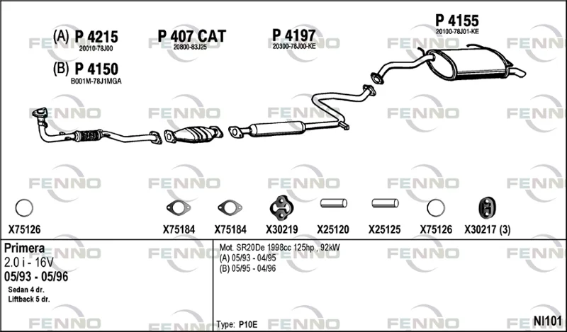 NISSAN PRIMERA (P10) 2.0 i - Výfukový systém - kompletní od 1/1995 do 6/1996, 1998 ccm, 92 kW, 125 hp, SR20DE, limuzína