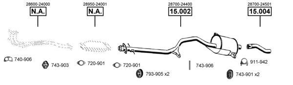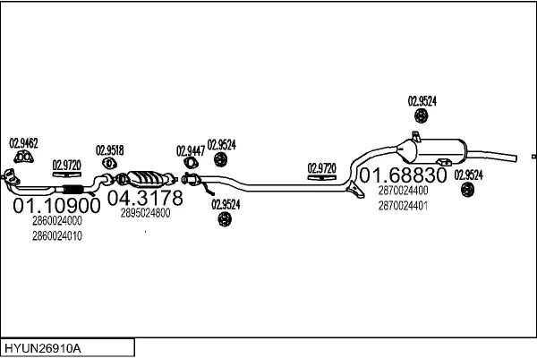 HYUNDAI PONY (X-2) 1.3 - Výfukový systém - kompletní od 10/1989 do 1/1995, 1298 ccm, 43 kW, 58 hp, G4DG, Šikmá zadní část