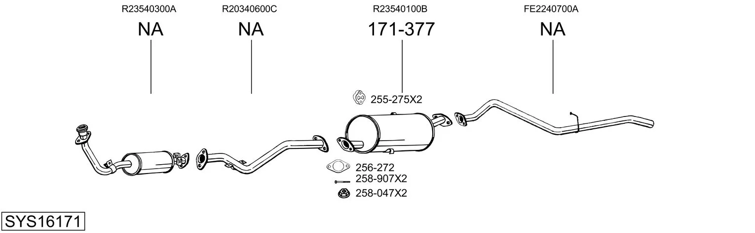 MAZDA E valník/podvozek (SD1) E2200 D - Výfukový systém - kompletní od 11/1988 do 3/1997, 2184 ccm, 47 kW, 64 hp, R281, valník/podvozek