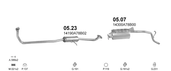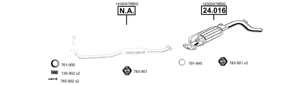 DAEWOO TICO (KLY3) 0.8 - Výfukový systém - kompletní od 2/1995 do 12/2000, 796 ccm, 35 kW, 48 hp, F8C, Šikmá zadní část