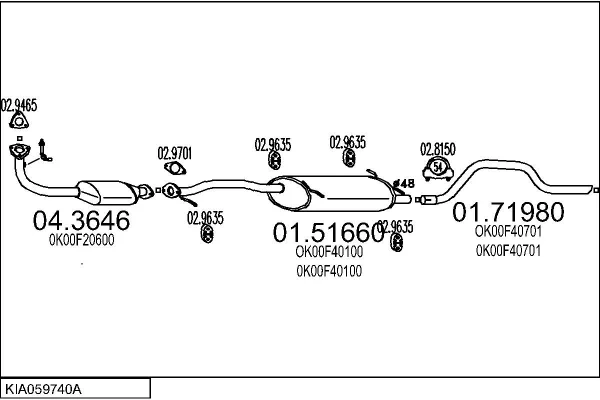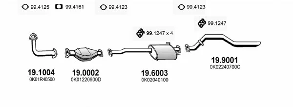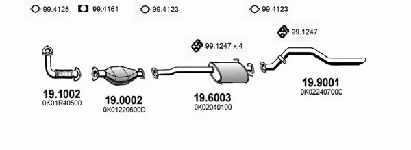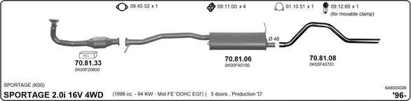 KIA SPORTAGE SUV (K00) 2.0 i 16V 4WD - Výfukový systém - kompletní od 4/1994 do 8/2003, 1998 ccm, 94 kW, 128 hp, FE (16V), SUV