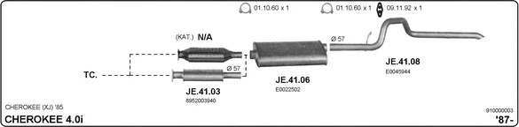 JEEP CHEROKEE (XJ) 4.0 i - Výfukový systém - kompletní od 1/1988 do 9/2001, 3964 ccm, 136 kW, 185 hp, ERH, uzavřený terénní vůz