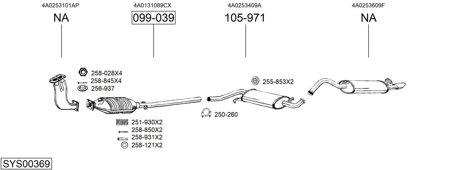 AUDI A6 C4 (4A2) 2.0 16V - Výfukový systém - kompletní od 6/1994 do 10/1997, 1984 ccm, 103 kW, 140 hp, ACE, limuzína