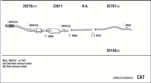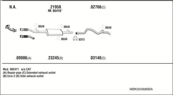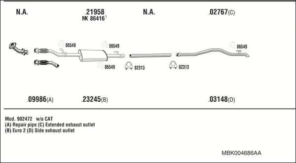 MERCEDES-BENZ SPRINTER 2-t autobus (B901, B902) 212 D (902.471, 902.472) - Výfukový systém - kompletní od 2/1995 do 4/2000, 2874 ccm, 90 kW, 122 hp, OM 602.980, autobus