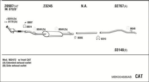 | Druh katalyzátoru | Pro vozidla bez katalyzátoru |