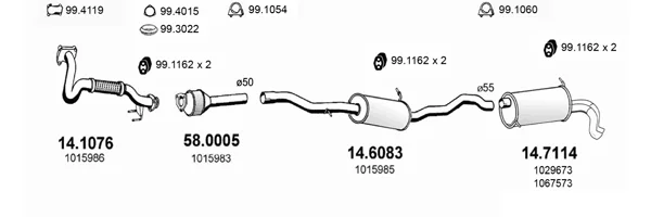 FORD GALAXY I (WGR) 1.9 TDI - Výfukový systém - kompletní od 3/1995 do 5/2006, 1896 ccm, 66 kW, 90 hp, 1Z, AHU, ANU, velkoprostorová limuzína