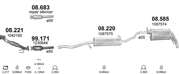 FORD GALAXY I (WGR) 1.9 TDI - Výfukový systém - kompletní od 3/1995 do 5/2006, 1896 ccm, 66 kW, 90 hp, 1Z, AHU, ANU, velkoprostorová limuzína