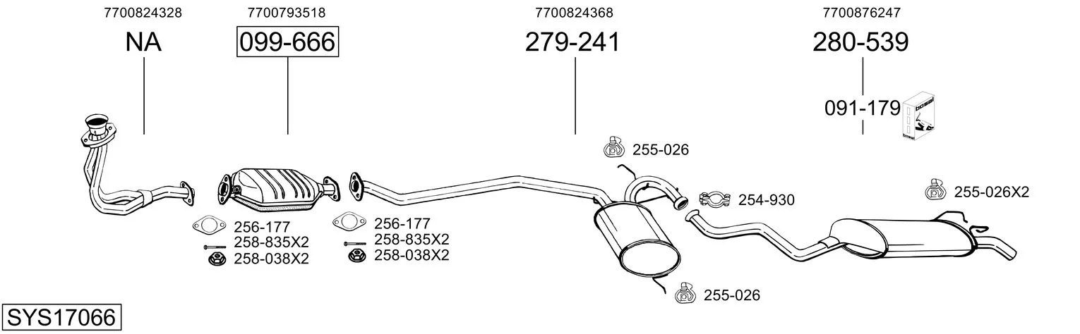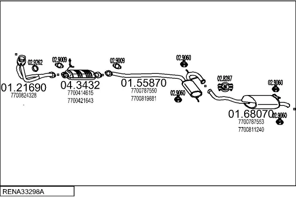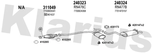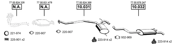 RENAULT 19 II Cabriolet (D53_, 853_) 1.8 (D53V, 853F, D53C) - Výfukový systém - kompletní od 7/1994 do 6/1996, 1794 ccm, 79 kW, 107 hp, F3P 682, F3P 764, F3P 765, Kabriolet
