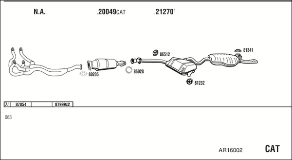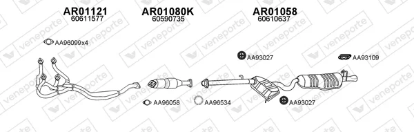 ALFA ROMEO 146 (930_) 1.7 i.e. 16V (930.B1) - Výfukový systém - kompletní od 12/1994 do 12/1996, 1712 ccm, 95 kW, 129 hp, AR 33401, Šikmá zadní část