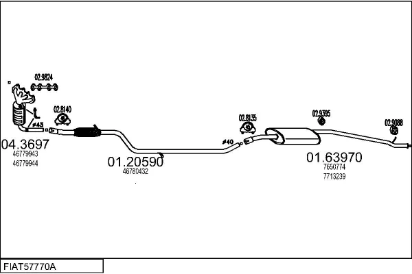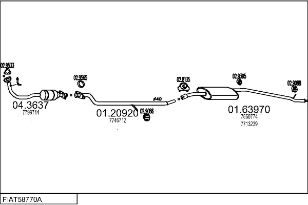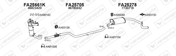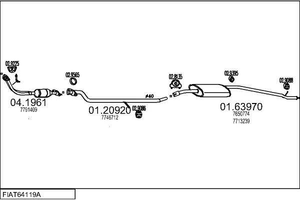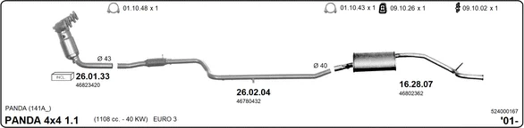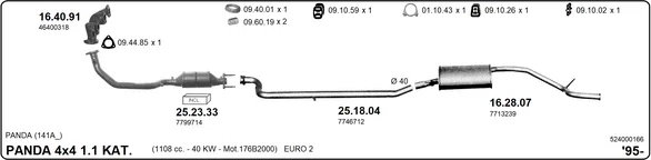FIAT PANDA (141_) 1100 4x4 - Výfukový systém - kompletní od 2/1995 do 7/2004, 1108 ccm, 40 kW, 54 hp, 176 B2.000, 187 A1.000, Šikmá zadní část