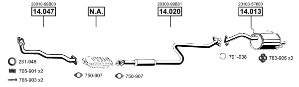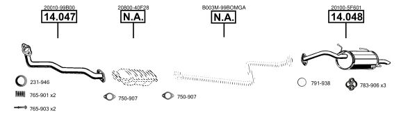 NISSAN MICRA II (K11) 1.3 i 16V (HK11) - Výfukový systém - kompletní od 8/1992 do 9/2000, 1275 ccm, 55 kW, 75 hp, CG13DE, Šikmá zadní část