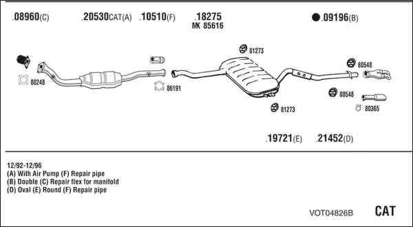 VOLVO 850 kombi (855) 2.4 - Výfukový systém - kompletní od 8/1992 do 7/1994, 2435 ccm, 103 kW, 140 hp, B 5252, kombi