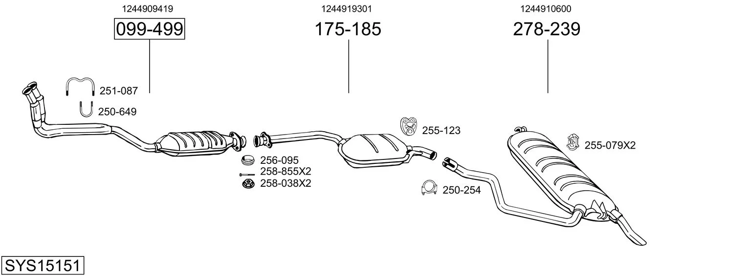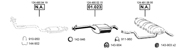MERCEDES-BENZ 124 T-Model (S124) 230 TE Cat (124.083) - Výfukový systém - kompletní od 6/1989 do 8/1992, 2298 ccm, 97 kW, 132 hp, M 102.982, kombi