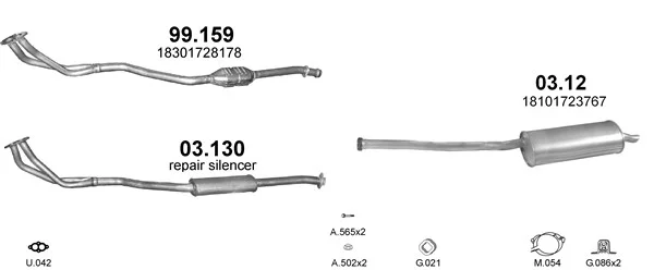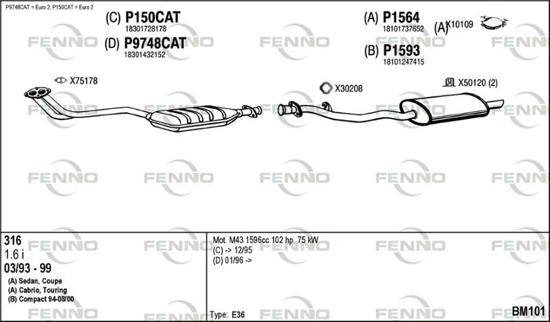 BMW 3 (E36) 316 i - Výfukový systém - kompletní od 9/1993 do 5/1998, 1596 ccm, 75 kW, 102 hp, M43 B16 (164E2), limuzína