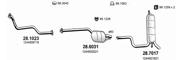 MERCEDES-BENZ 124 T-Model (S124) 300 T Turbo-D 4-matic (124.393) - Výfukový systém - kompletní od 9/1986 do 1/1989, 2996 ccm, 105 kW, 143 hp, OM 603.963, kombi