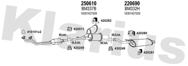 BMW 5 (E39) 523 i - Výfukový systém - kompletní od 9/1995 do 8/2000, 2494 ccm, 125 kW, 170 hp, M52 B25 (256S3), M52 B25 (256S4), limuzína