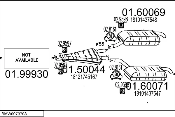 BMW 7 (E38) 735 i, iL - Výfukový systém - kompletní od 3/1996 do 8/1998, 3498 ccm, 173 kW, 235 hp, M62 B35 (358S1), limuzína